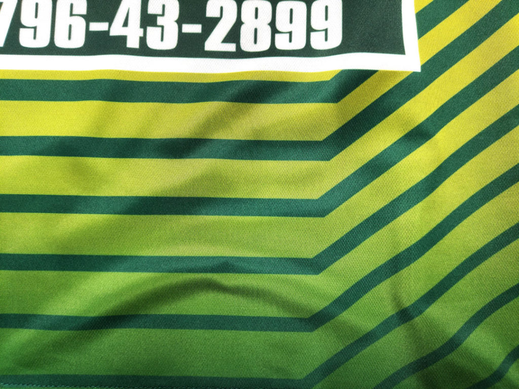 ポリエステルとポリウレタンやナイロンなどの混合生地もポリエステル80%以上であれば、昇華転写プリント可能ですございますが、当社はより「昇華」技術のもつ発色の美しさを維持するため、持ち込み生地はポリエステル100%でお願いしております。