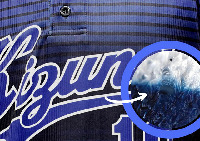 昇華プリントは、高温真空プレスで生地の繊維奥までデジタル染めする技術。