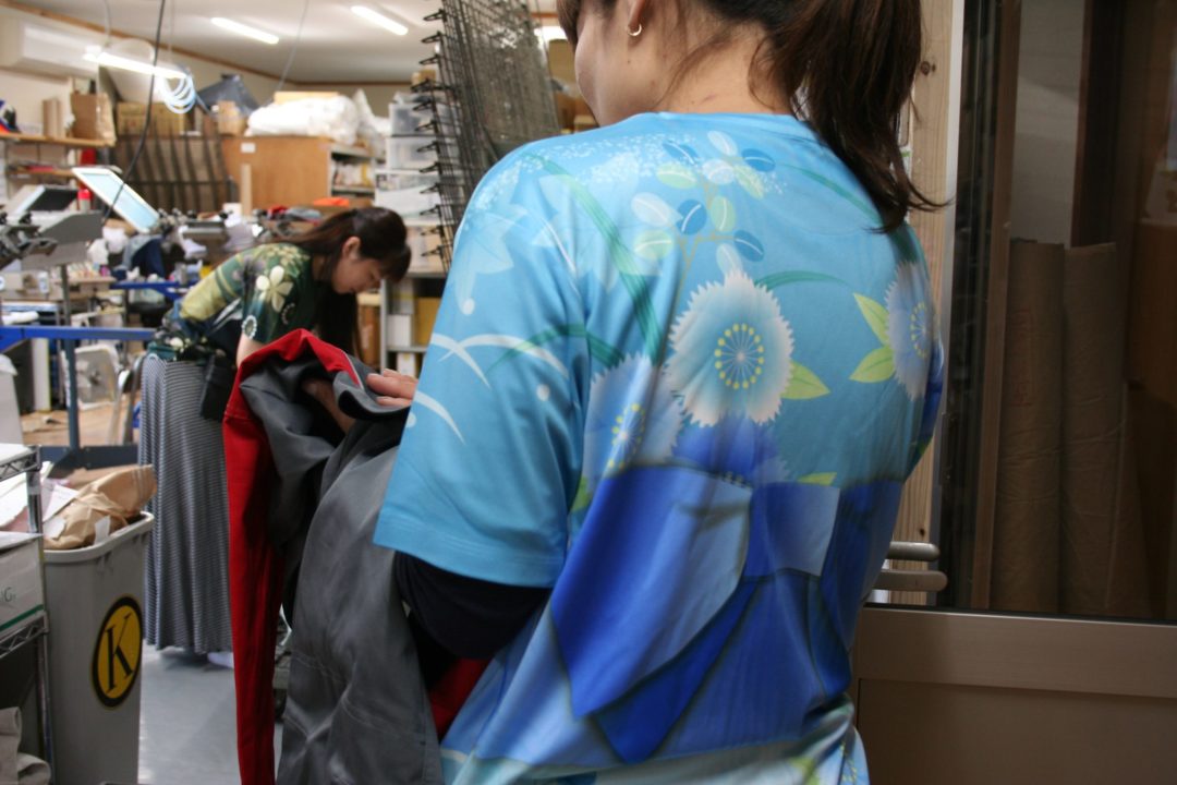 絆工房でも、同じ浴衣Tシャツをスタッフウェアとしてきて仕事をしたりしています。